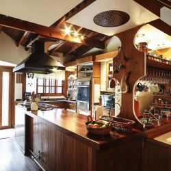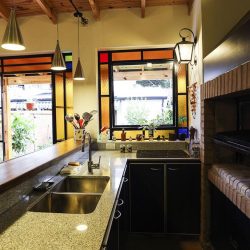 Una zona indispensable en estas casas el el sector de Barbacoa. En este caso propusimos adaptar un espacio semi-cerrado en un espacio de barbacoa y cocina independiente de la casa e integrada totalmente al jardín. Este espacio cuenta con una barbacoa, neveras, fregaderos, y un pequeño salón que se puede ampliar al exterior abriendo todos los cerramientos que diseñamos especialmente para este proyecto.