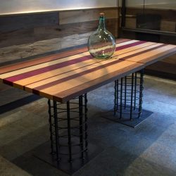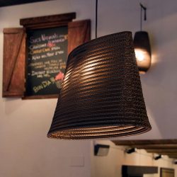 Como materiales destacamos el uso de la chapa negra combinada con la madera de pino envejecido original de Canadá. Para las paredes utilizamos estucados tradicionales.